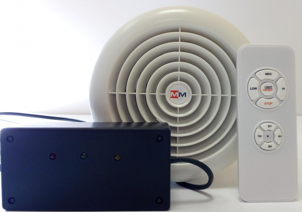 TkV-03 RF "Сибирь" приточная с подогоревателем. Беспроводный пульт ДУ (радиоканал 433 МГц). 3 скорости, 30/70/100 м³/ч, 800 Вт (эл. Калорифер) + 18 Вт (вентилятор), встроенный термостат (менее +16ºС- вкл., более +23ºС- выкл.), обратный клапан, фильтр (угольный + G4). Минимальная толщина стены 270 мм, Ø 150 мм . Внутренняя решётка — круглая, белая